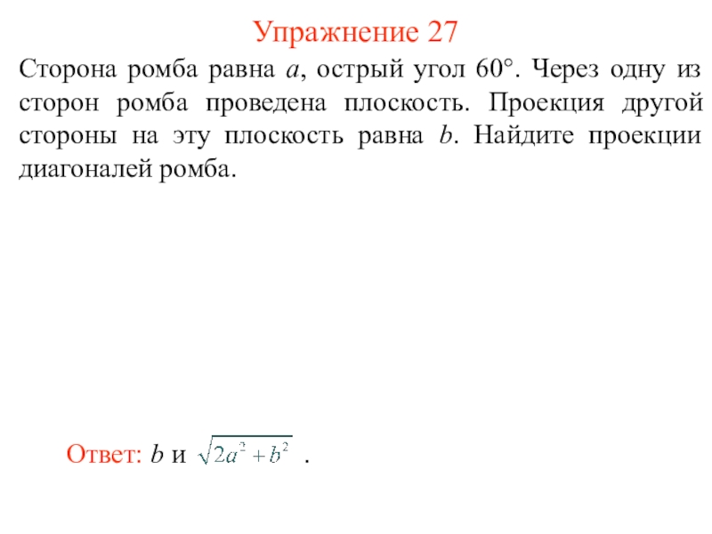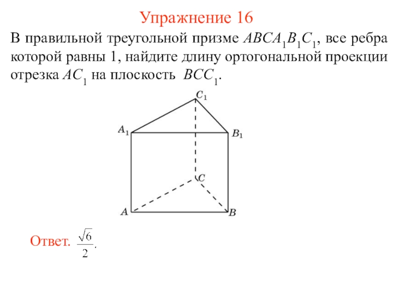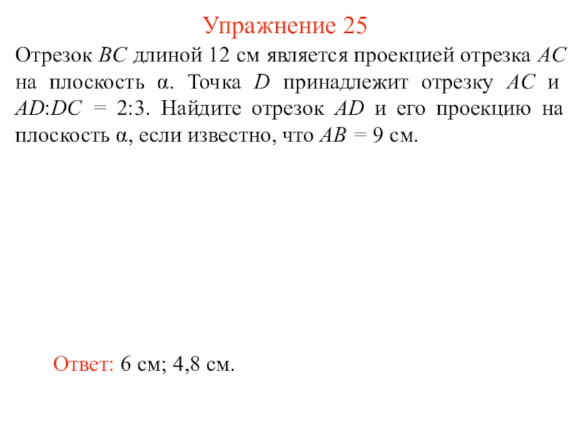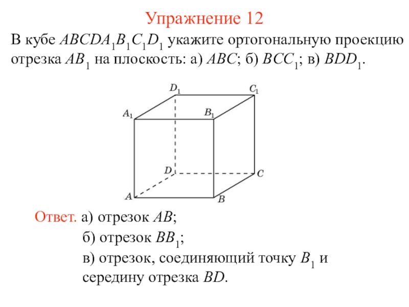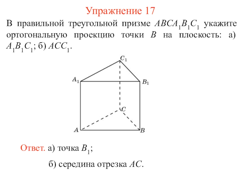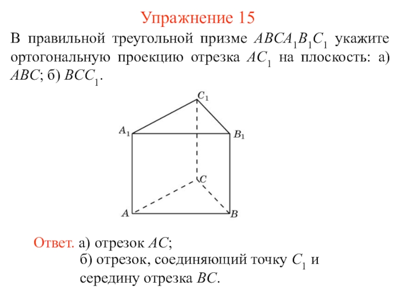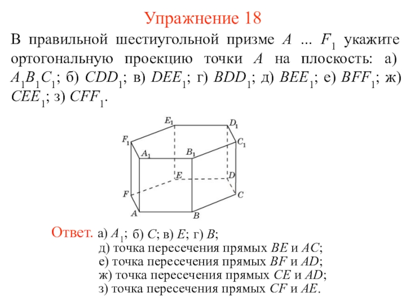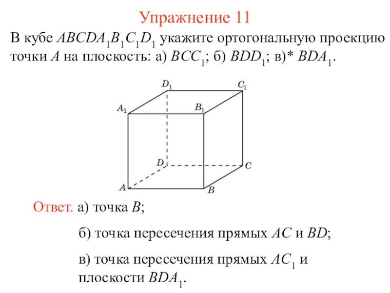 пересечения прямой a с плоскостью π обозначим A’. Она называется ортогональной проекцией точки A на плоскость π.Соответствие, при котором точкам A пространства сопоставляются их ортогональные проекции A’, называется ортогональным проектированием на плоскость π.