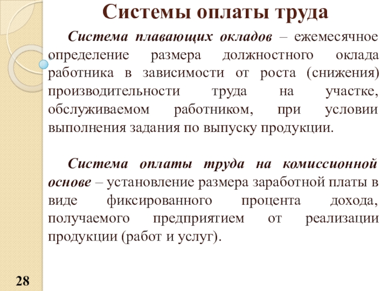 Система оплаты труда на комиссионной основе – установление размера заработной платы в виде фиксированного процента дохода, получаемого предприятием от реализации продукции (работ и услуг).