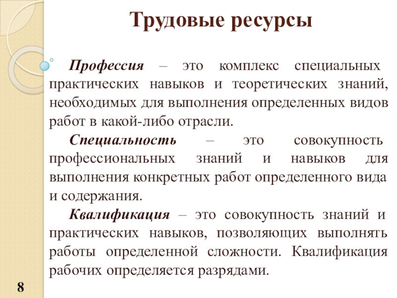 Специальность – это совокупность профессиональных знаний и навыков для выполнения конкретных работ определенного вида и содержания.