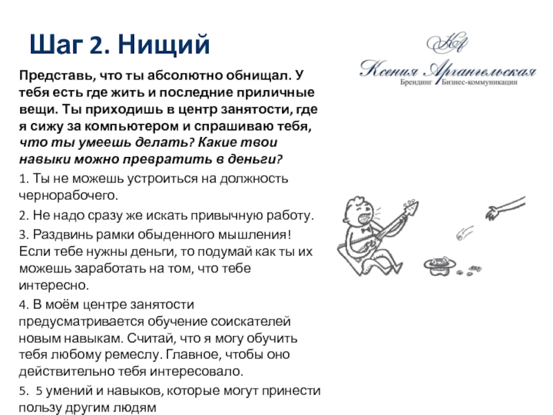 занятости, где я сижу за компьютером и спрашиваю тебя, что ты умеешь делать? Какие твои навыки можно превратить в деньги?