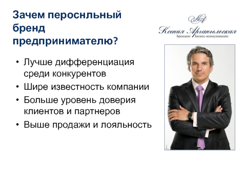 Слайд 14Зачем пероснльный бренд предпринимателю?