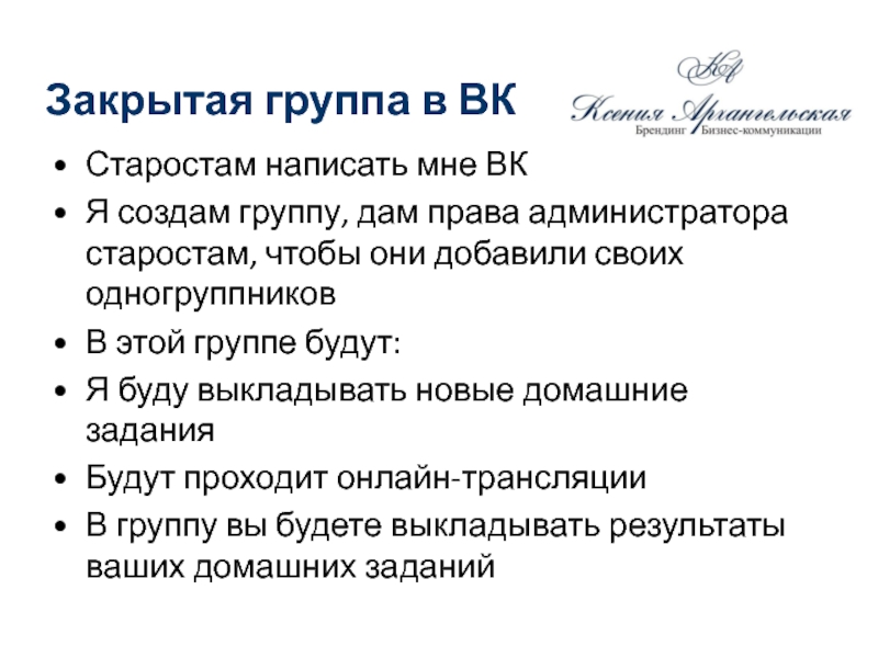 Слайд 3Закрытая группа в ВК