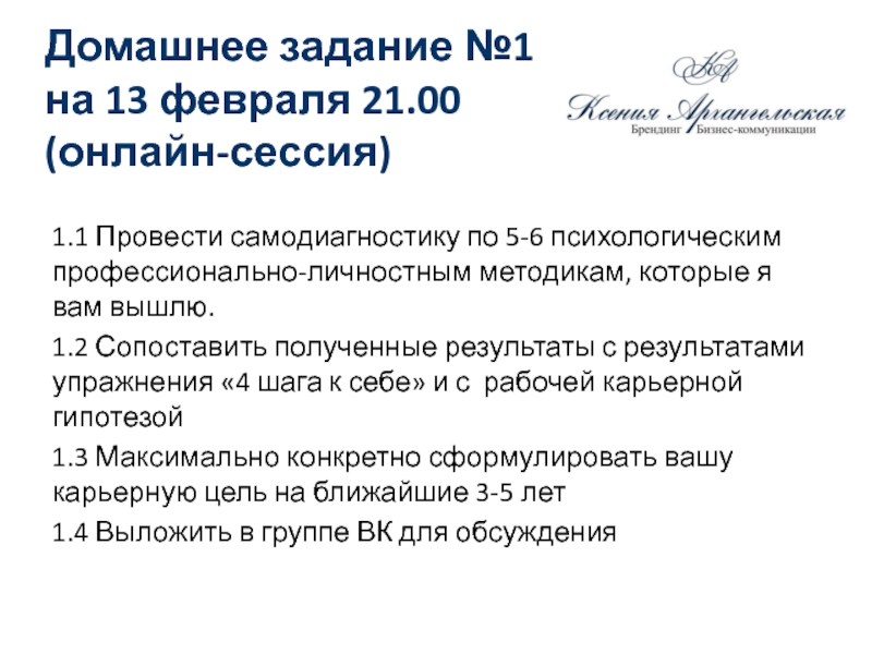 результаты с результатами упражнения «4 шага к себе» и с рабочей карьерной гипотезой