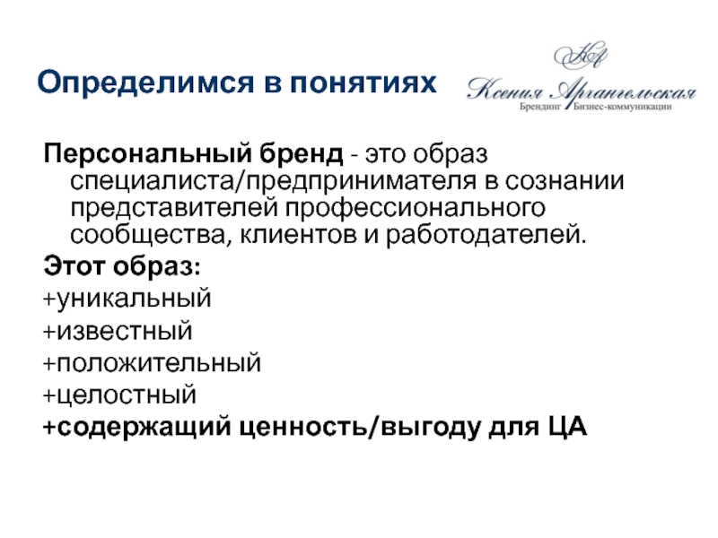 Персональный бренд - это образ специалиста/предпринимателя в сознании