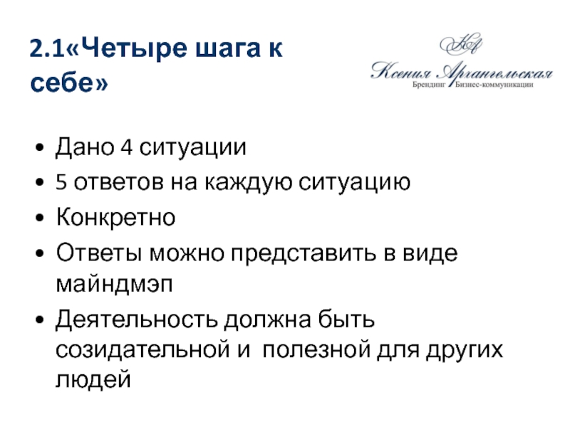 Слайд 202.1«Четыре шага к себе»
