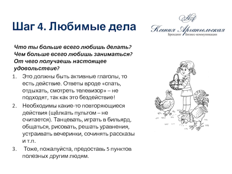 Слайд 25Шаг 4. Любимые дела