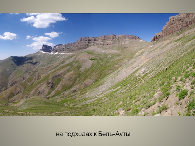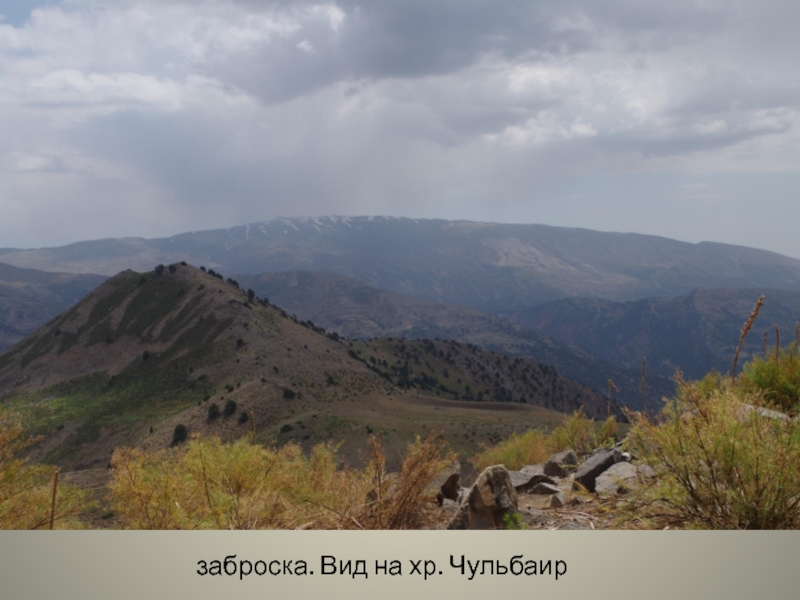 Слайд 17вид с пер. Бель-Ауты на хр. Чульбаир.