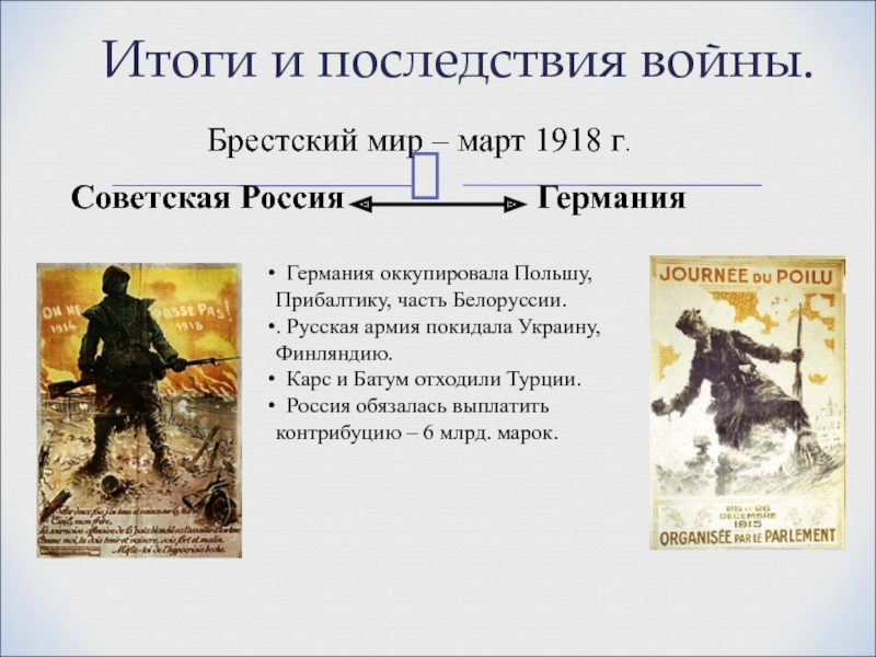 Россия обязалась выплатить контрибуцию – 6 млрд. марок.