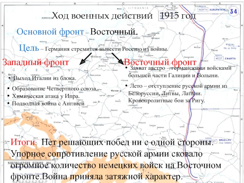 Лето – отступление русской армии из Белоруссии, Литвы, Латвии.Кровопролитные бои за Ригу.
