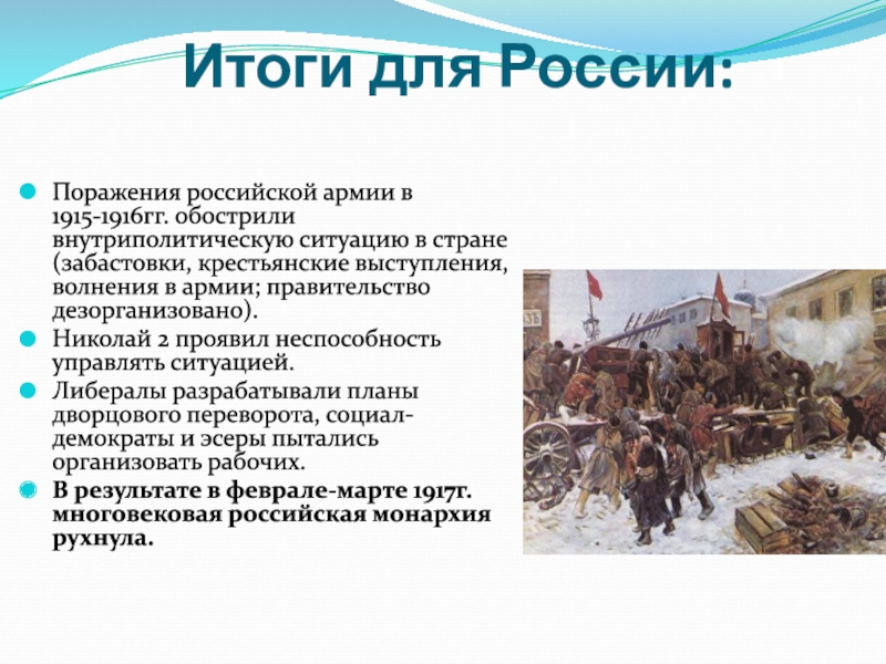 Поражения российской армии в 1915-1916гг. обострили внутриполитическую ситуацию