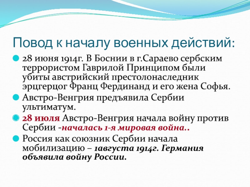 . Мобилизация проходит и в России. Официальное начало Первой мировой