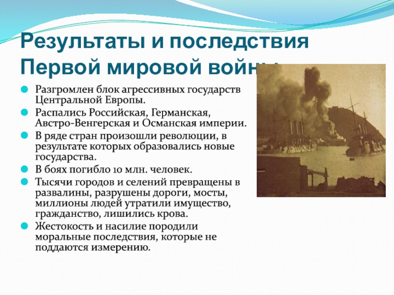 Распались Российская, Германская, Австро-Венгерская и Османская империи.