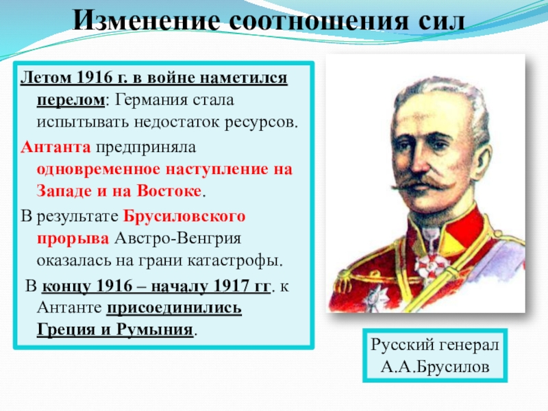 Слайд 32Летом 1916 г. в войне наметился перелом: Германия стала испытывать