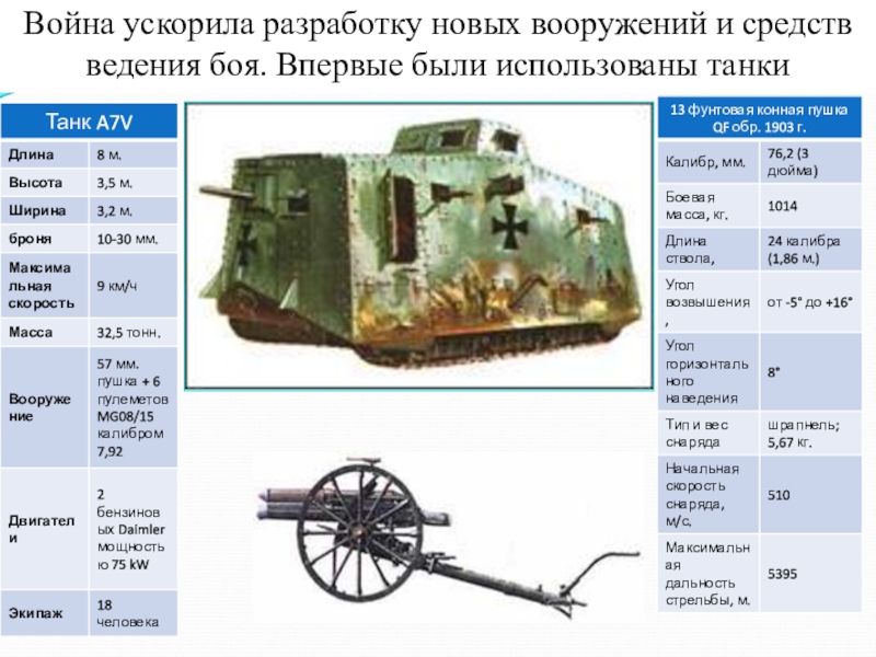 Слайд 39Война ускорила разработку новых вооружений и средств ведения боя. Впервые