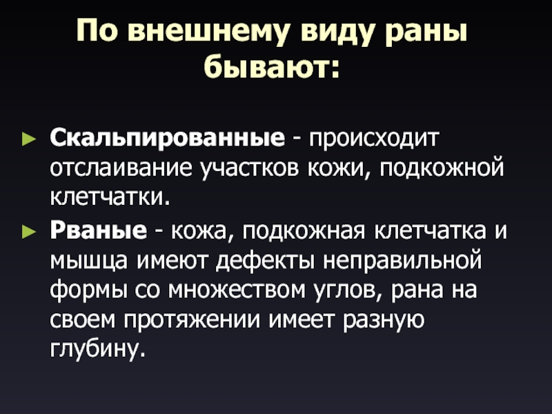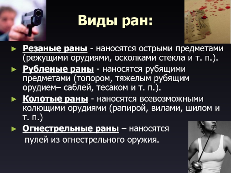 Резаные раны - наносятся острыми предметами (режущими орудиями, осколками