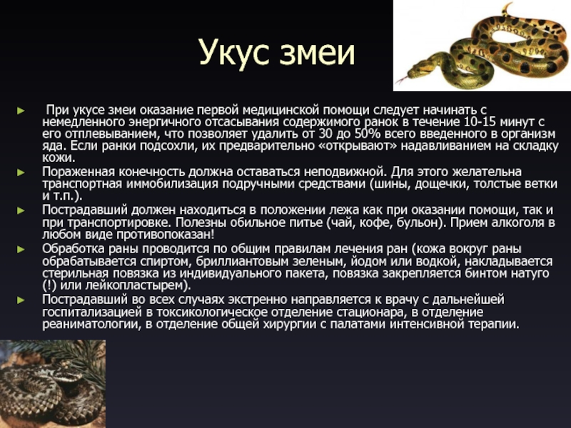 10-15 минут с его отплевыванием, что позволяет удалить от 30 до 50% всего введенного в организм яда. Если ранки подсохли, их предварительно «открывают» надавливанием на складку кожи.