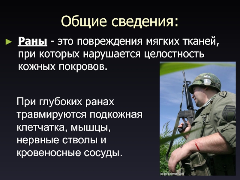 При глубоких ранах травмируются подкожная клетчатка, мышцы,
