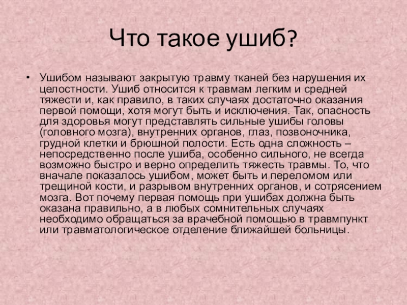 целостности. Ушиб относится к травмам легким и средней тяжести и,