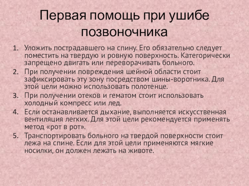 Транспортировать больного на твердой поверхности стоит лежа на спине. Если для этой цели применяются мягкие носилки, он должен лежать на животе.