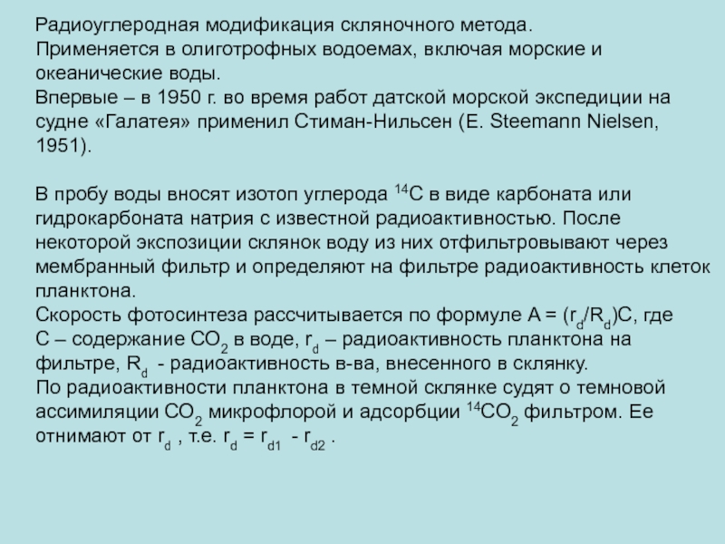 Слайд 11Радиоуглеродная модификация скляночного метода.
