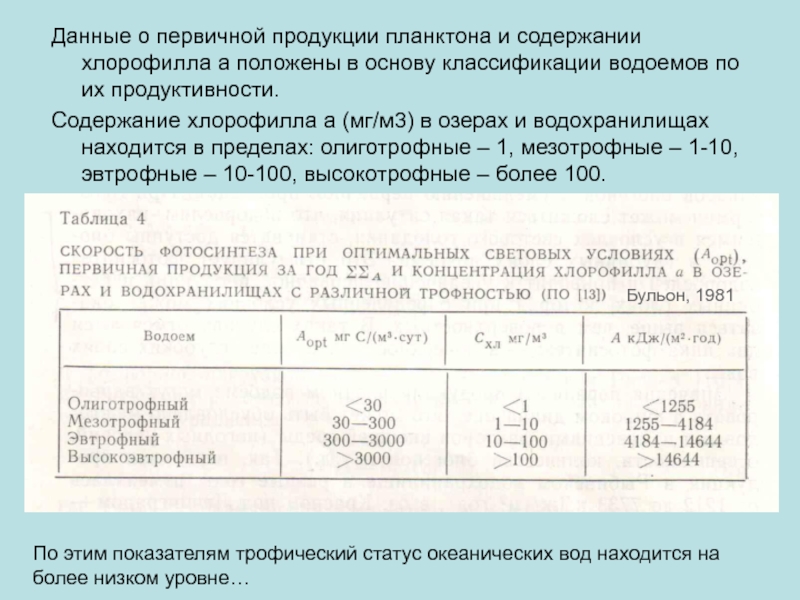 Слайд 17Данные о первичной продукции планктона и содержании хлорофилла а положены