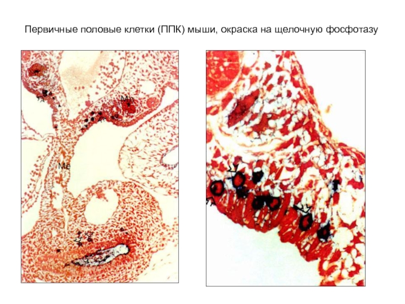 (его экспрессия прослеживается на пути миграции предшественников половых клеток). (A.