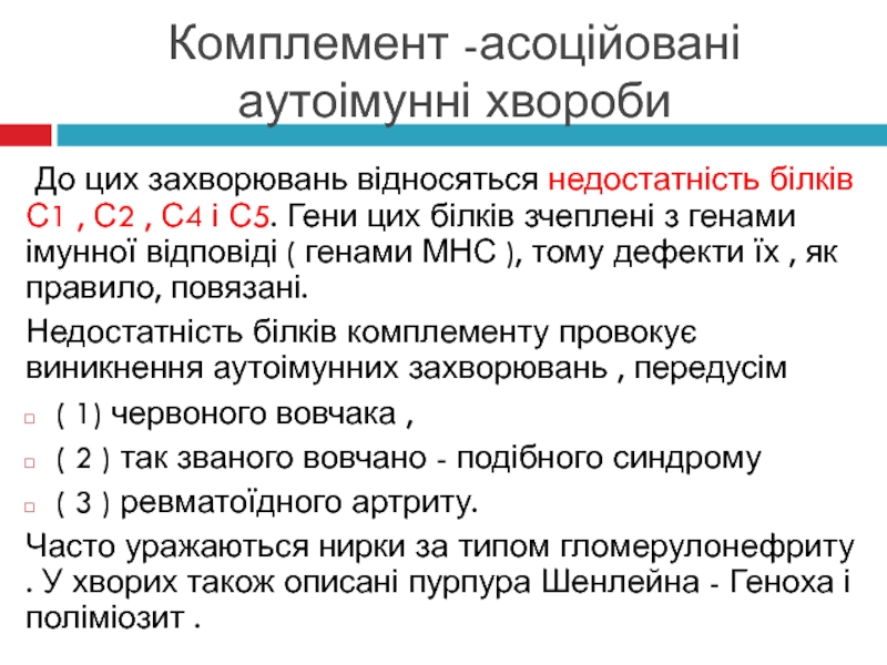 Слайд 8Комплемент -асоційовані аутоімунні хвороби