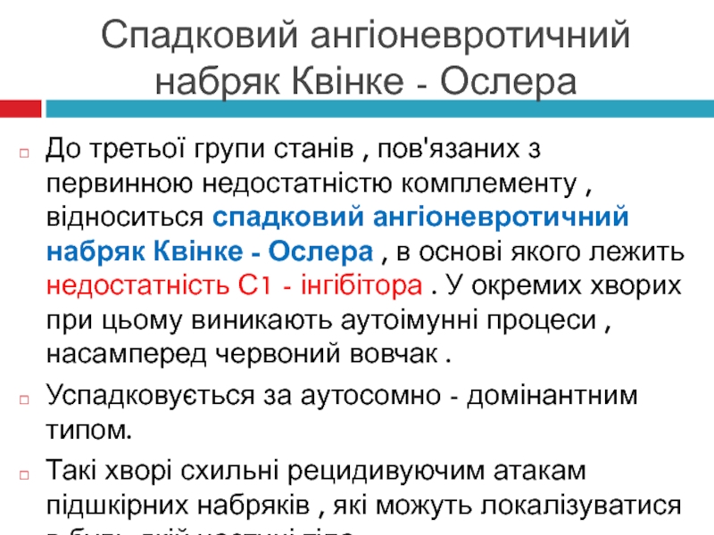 Слайд 10Спадковий ангіоневротичний набряк Квінке - Ослера