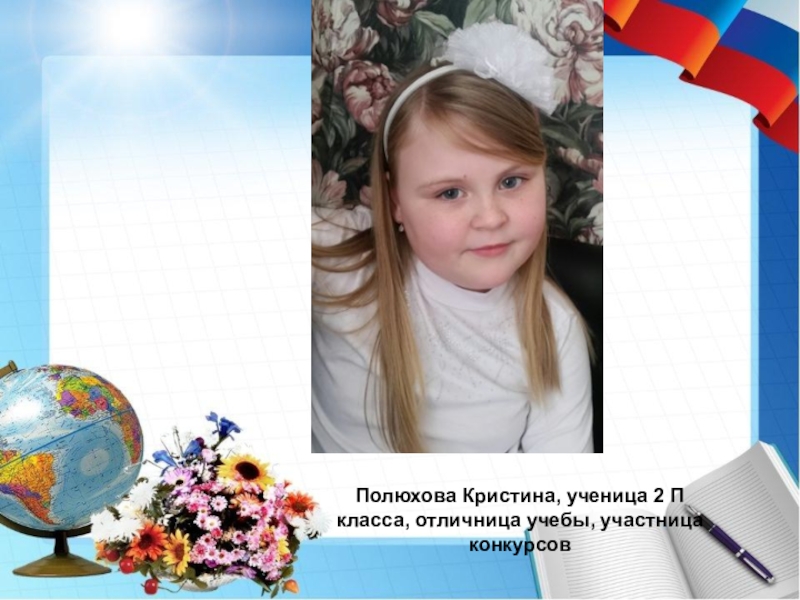 Слайд 44Полюхова Кристина, ученица 2 П класса, отличница учебы, участница конкурсов