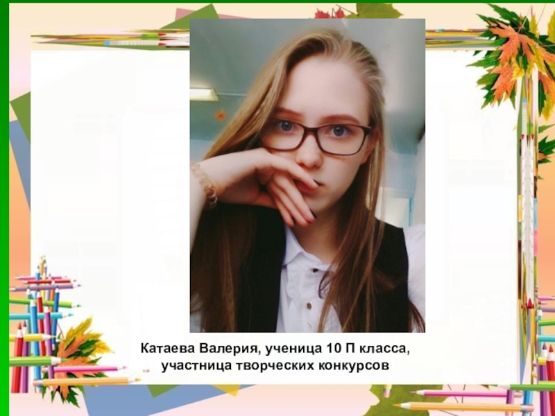 Слайд 20Катаева Валерия, ученица 10 П класса, участница творческих конкурсов