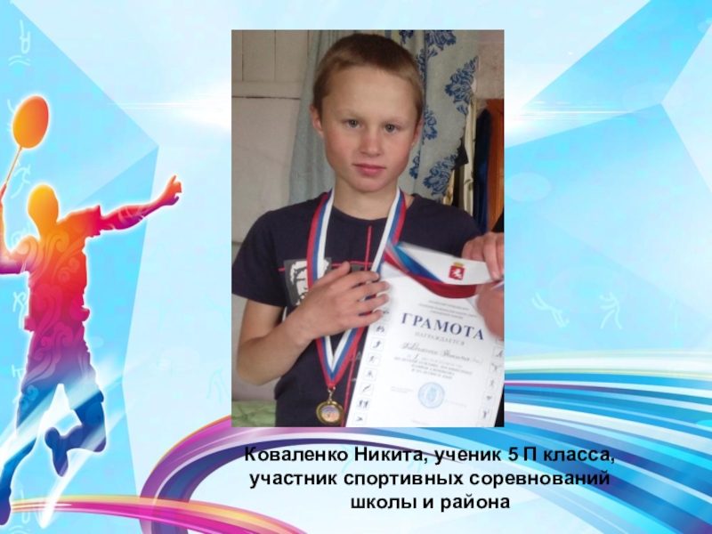 Слайд 11Коваленко Никита, ученик 5 П класса, участник спортивных соревнований школы