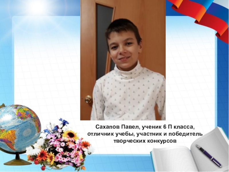 Сахапов Павел, ученик 6 П класса, отличник учебы, участник и победитель творческих конкурсов