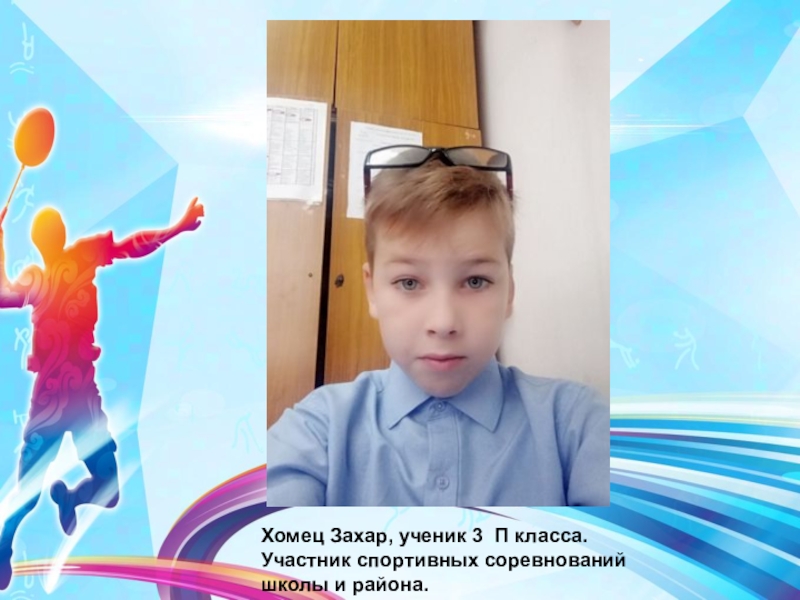Слайд 15Хомец Захар, ученик 3 П класса. Участник спортивных соревнований школы