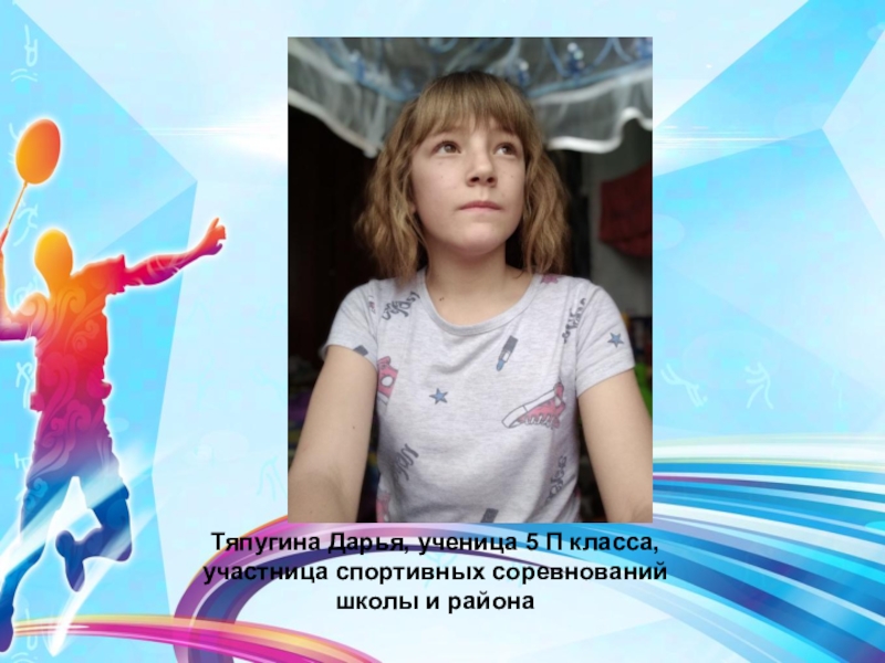 Слайд 9Тяпугина Дарья, ученица 5 П класса, участница спортивных соревнований школы