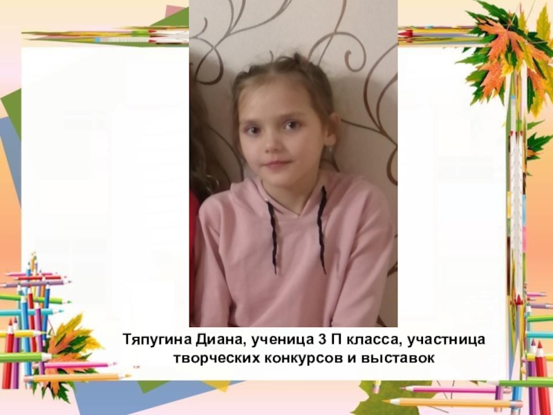 Слайд 30Тяпугина Диана, ученица 3 П класса, участница творческих конкурсов и