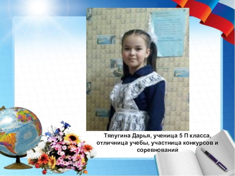 Слайд 40Тяпугина Дарья, ученица 5 П класса, отличница учебы, участница конкурсов