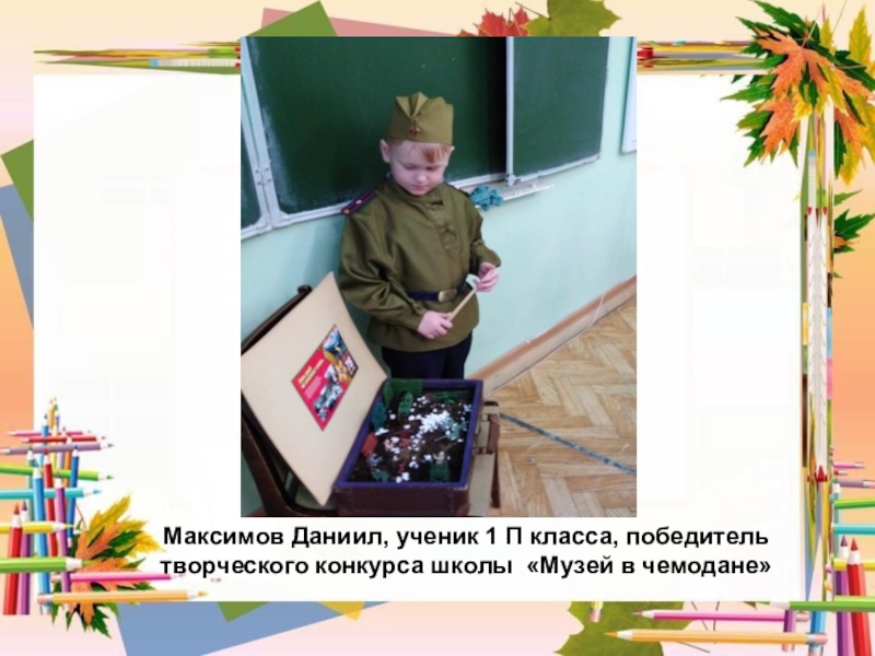 Максимов Даниил, ученик 1 П класса, победитель творческого конкурса школы «Музей в чемодане»
