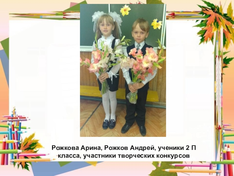 Слайд 31Рожкова Арина, Рожков Андрей, ученики 2 П класса, участники творческих