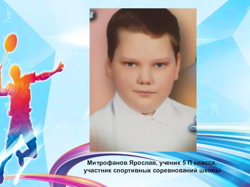 Слайд 13Митрофанов Ярослав, ученик 5 П класса, участник спортивных соревнований школы
