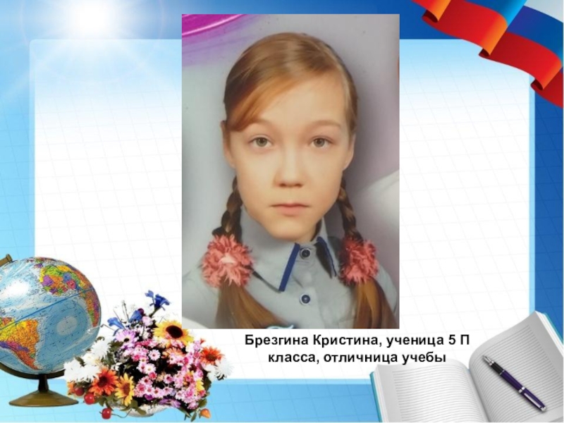 Слайд 41Брезгина Кристина, ученица 5 П класса, отличница учебы