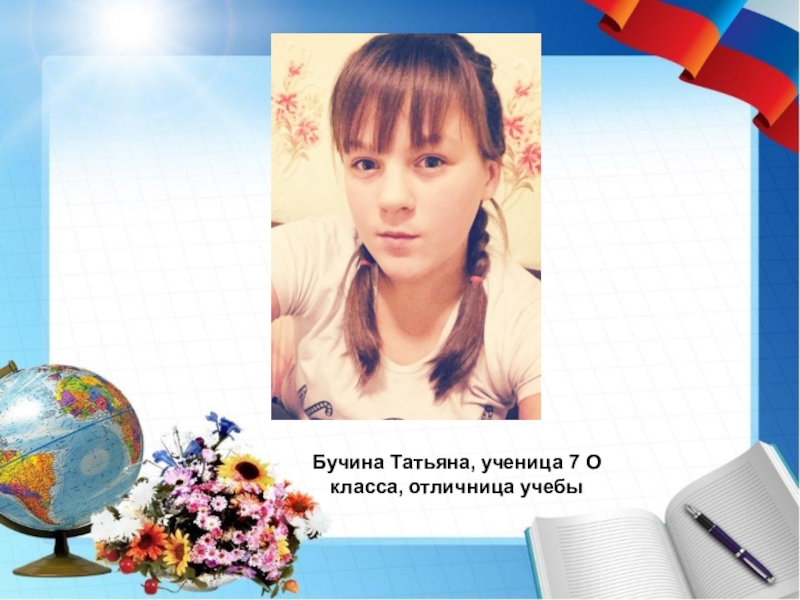 Слайд 36Бучина Татьяна, ученица 7 О класса, отличница учебы