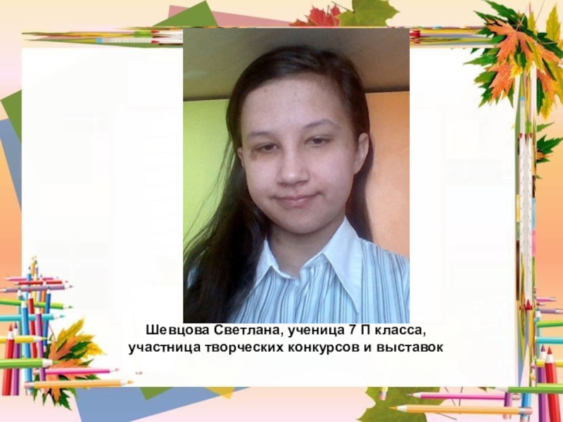Слайд 25Шевцова Светлана, ученица 7 П класса, участница творческих конкурсов и