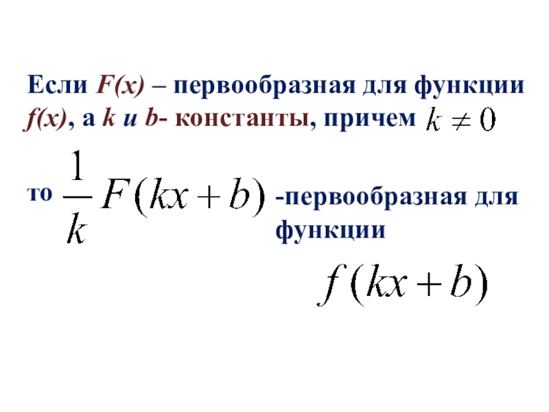 Если F(x) – первообразная для функции f(x), а k и b- константы, причемто -первообразная для функции