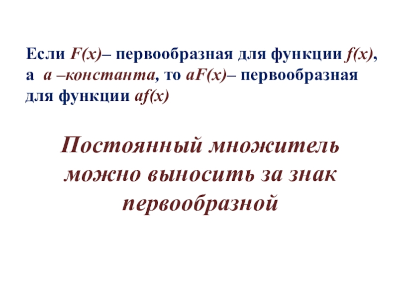 Если F(x)– первообразная для функции f(x), а а –константа, то аF(x)– первообразная для функции аf(x)Постоянный множитель можно