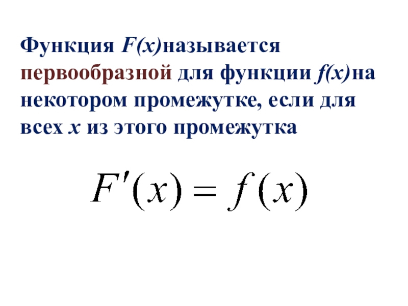 Слайд 2Функция F(x)называется первообразной для функции f(x)на некотором промежутке, если для