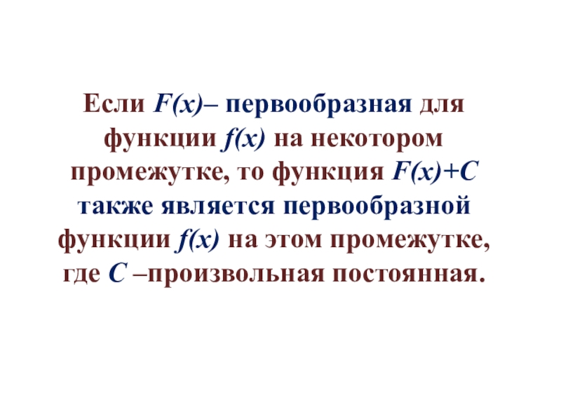 Слайд 5Если F(x)– первообразная для функции f(x) на некотором промежутке, то