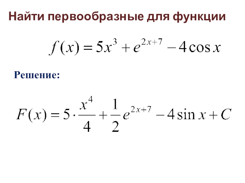 функции g(x), то F(x)+G(x)– первообразная для функции f(x)+g(x)