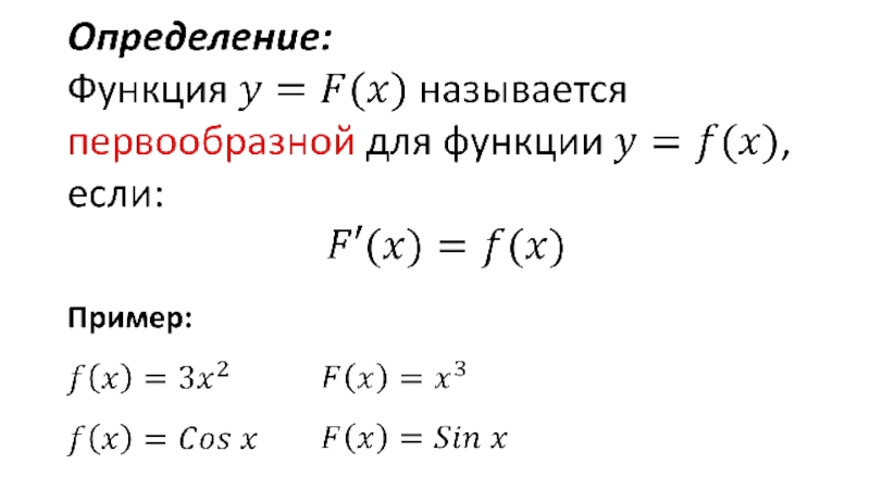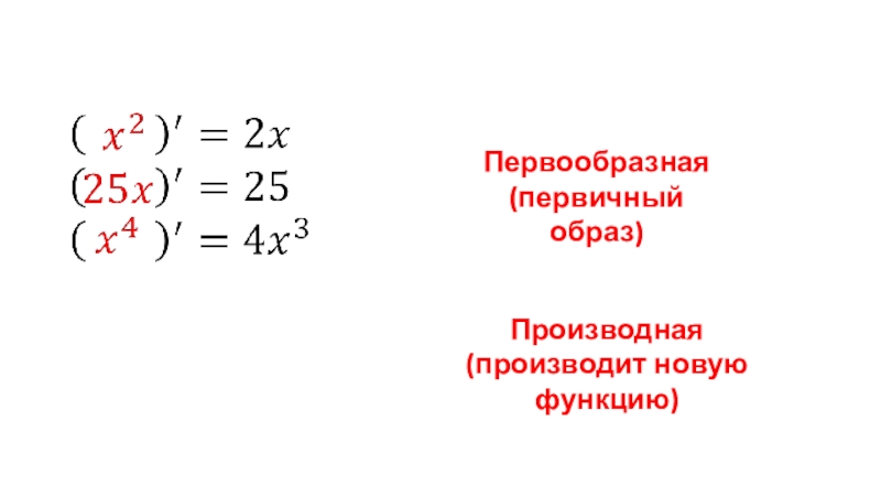 Первообразная (первичный образ)Производная(производит новую функцию)