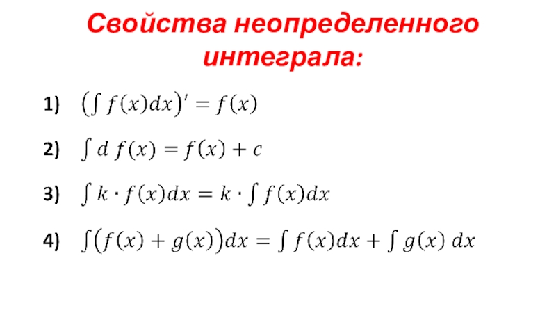 Основные способы интегрирования: 1) Метод непосредственного интегрирования.Заключается в использовании основных свойств неопределенного интеграла и приведении подынтегрального выражения
