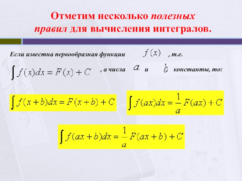 формулы интегрирования.